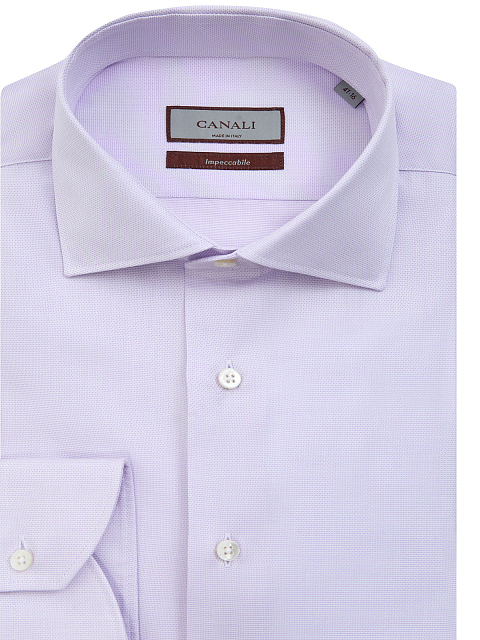 Элегантная мужская рубашка из хлопкового пике от Canali представлена в приглушенном лавандовом оттенке. Полностью натуральная ткань обеспечивает максимальный комфорт и сохраняет форму благодаря специальной обработке Impeccabile. Классический крой делает модель идеальным решением для создания комфортных аутфитов в рамках делового дресс-кода. Детали: отложной ворот, пуговицы из перламутра, закругленный нижний край. Сделано в Италии.