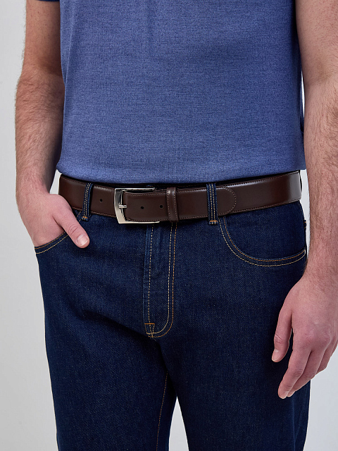 Мужской ремень ручной работы из гладкой кожи с литой пряжкой CANALI-M купить за 23 840 руб.