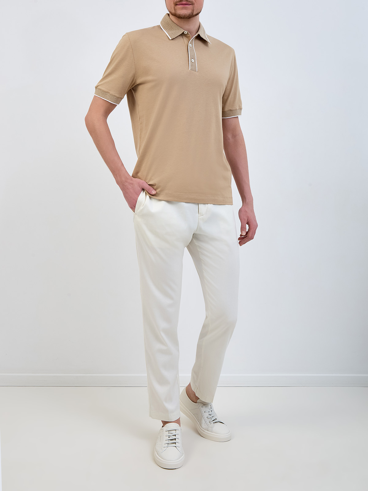 Поло с трикотажной отделкой и контрастной окантовкой кромок