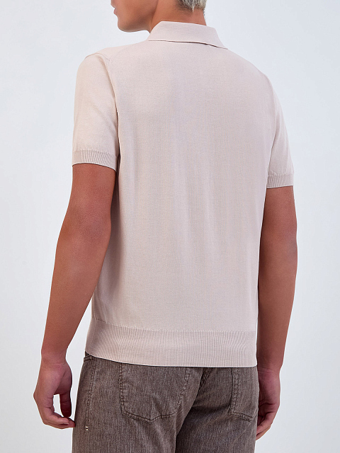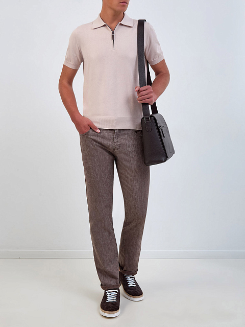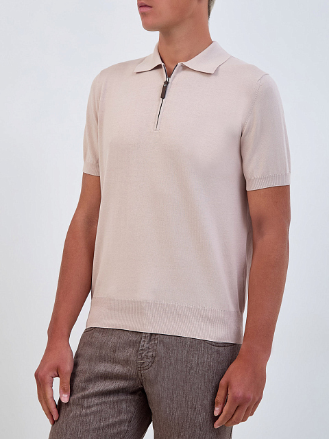 Хлопковый джемпер-поло с молнией и пуллером из кожи