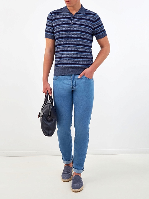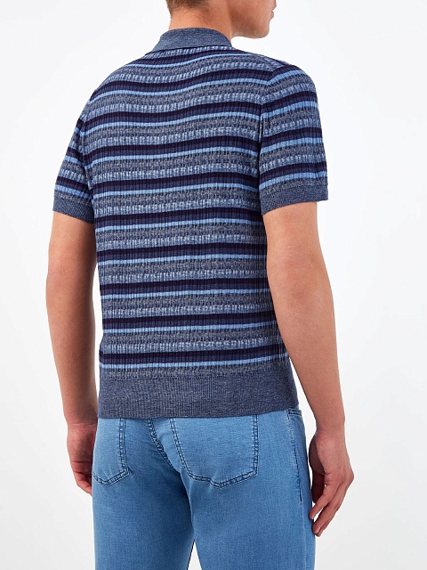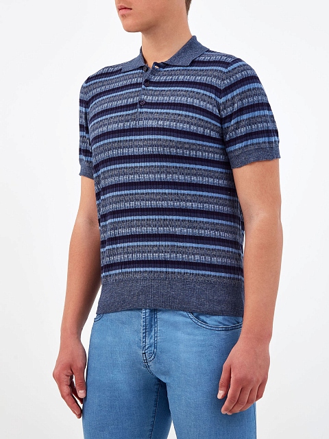 Хлопковый джемпер-поло с короткими рукавами от Canali создан в синей гамме и дополнен лаконичным узором в полоску. Техника тонкой чулочной вязки раскрывает ценные свойства натуральной пряжи, делая модель максимально комфортной. Эластичные манжеты и нижний край обеспечивают слегка облегающую посадку по фигуре. Сделано в Италии.