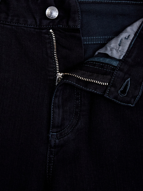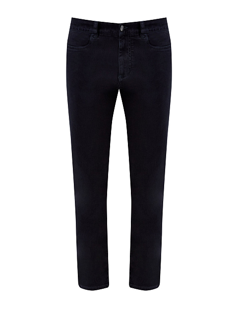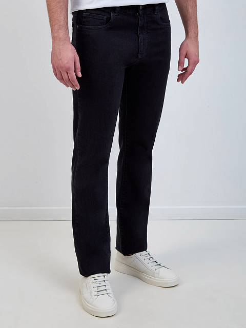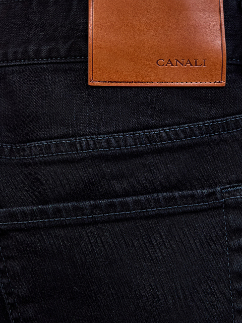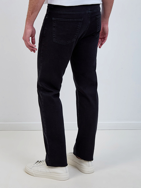 Джинсы из эластичного хлопкового денима с нашивкой из кожи