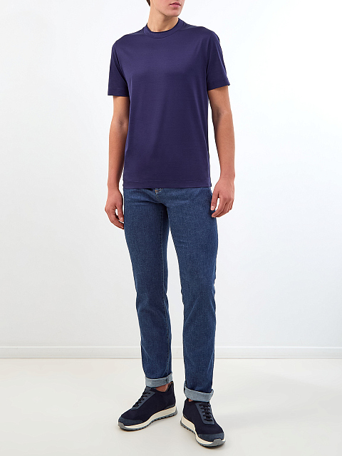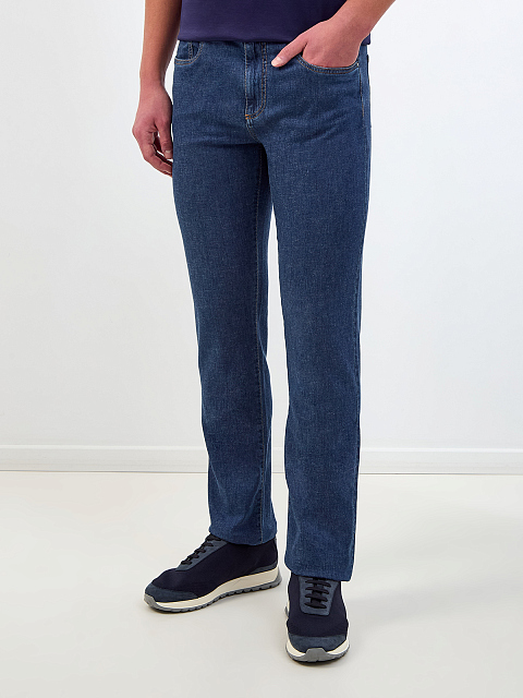 Мужские джинсы из окрашенного вручную денима с кожаной нашивкой CANALI-M купить за 31 320 руб.