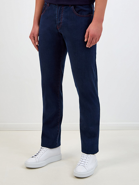 Стильные мужские джинсы от Canali выполнены мастерами бренда вручную, хлопковый деним с добавлением эластичных волокон сохраняет комфорт в движении. Окрашенная в готовом виде модель приобретает характерный выбеленный эффект на кромках, динамичный акцент в образ вносит контрастная прострочка и нашивка из гладкой кожи с тиснением на поясе. Сделано в Италии.