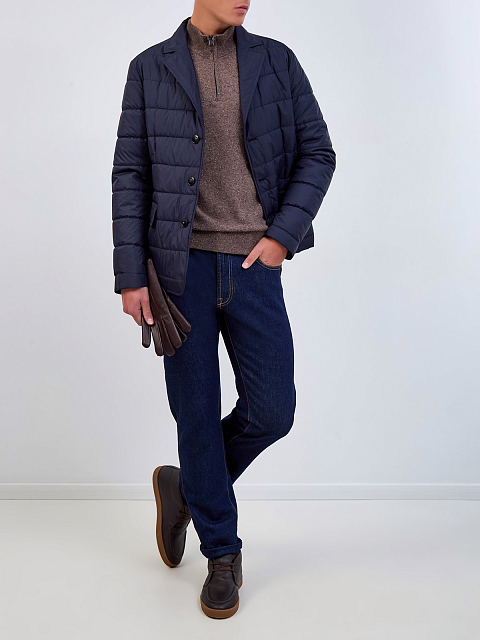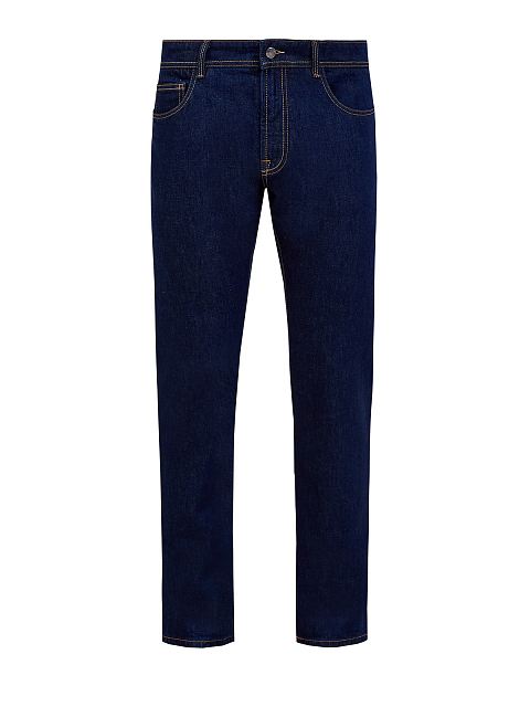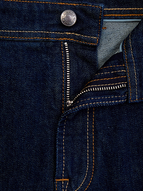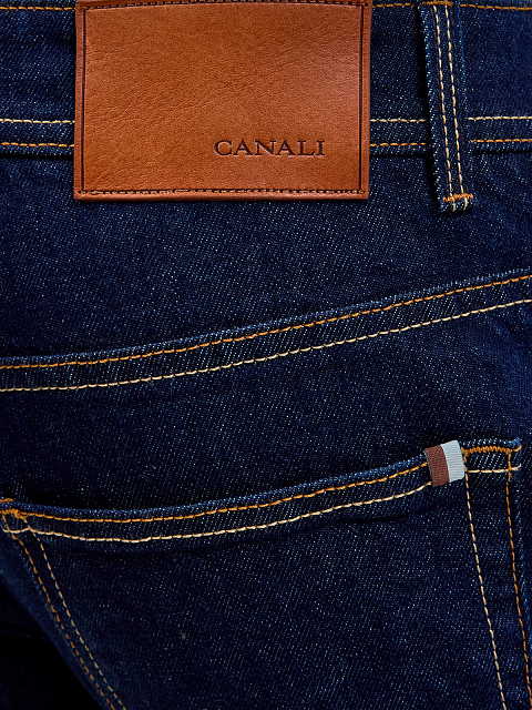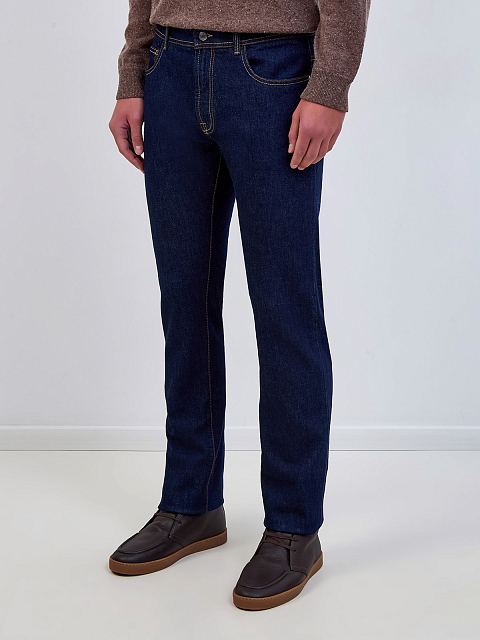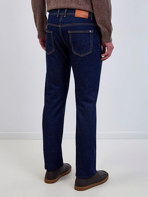 Джинсы с двухцветной прострочкой и патчем из гладкой кожи