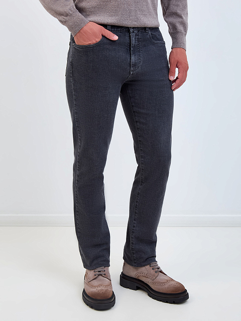 Стильные мужские джинсы в серой гамме от Canali выполнены мастерами бренда вручную. Хлопковый деним с добавлением эластичных волокон и расслабленный силуэт Regular Fit сохраняют комфорт в движении. Окрашенная в готовом виде модель приобретает характерный выбеленный эффект, расслабленный акцент в образ вносит нашивка из гладкой кожи с тиснением на поясе. Детали: контрастная прострочка швов, пять карманов. Сделано в Италии.