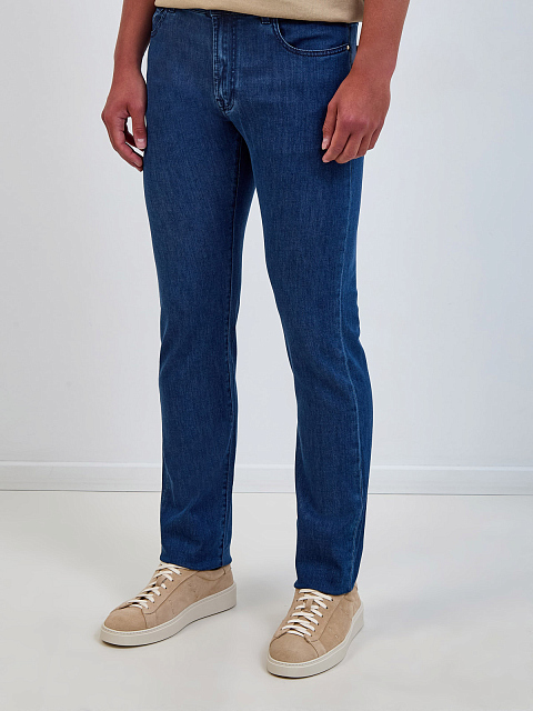 Джинсы из лиоцелла и хлопка с текстурной кожаной нашивкой