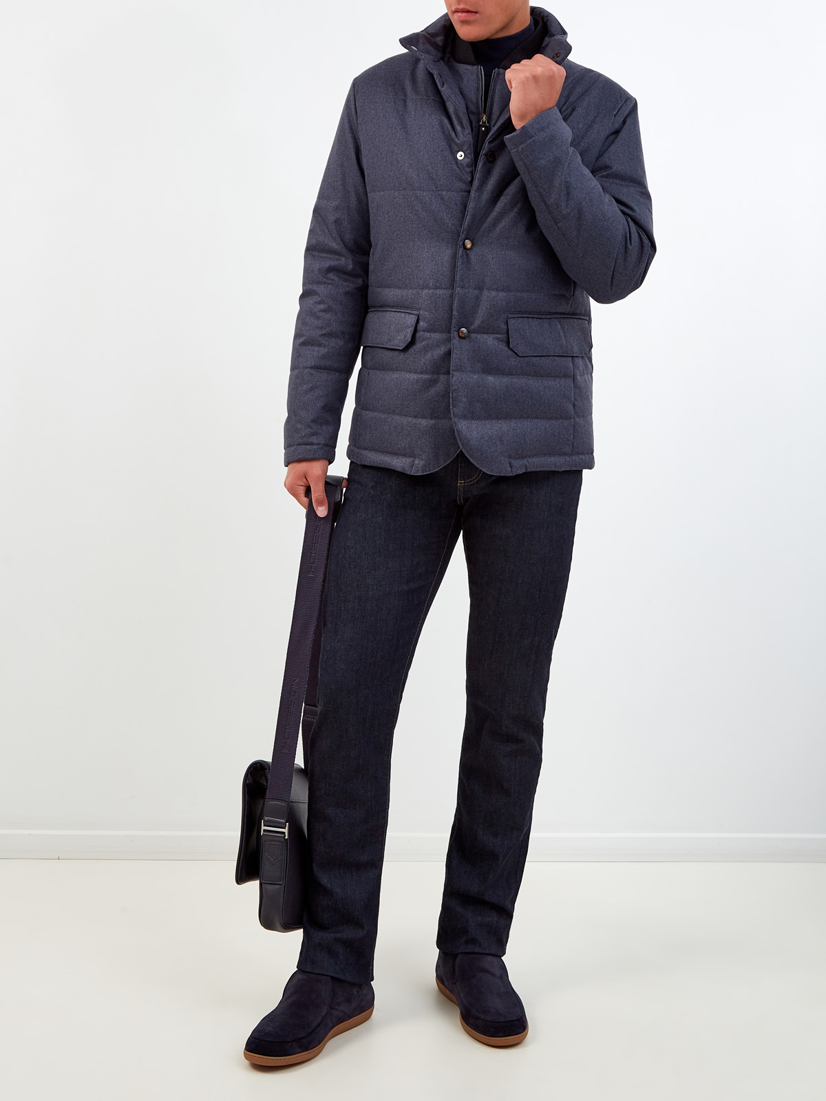 Лаконичная мужская куртка от Canali выполнена из водо- и ветронепроницаемого твила Rain Protection, материал с легкой утепляющей прослойкой идеально подходит для погодных условий межсезонья. Внутренний жилет с трикотажным воротом делает модель универсальным дополнением повседневных образов. Детали: накладные карманы, двойная линия застежки на брендированные пуговицы и молнию. Сделано в Италии.