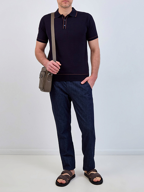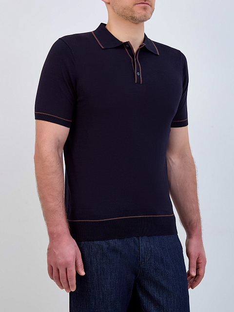 Джемпер-поло из гладкой хлопковой пряжи с контрастным кантом