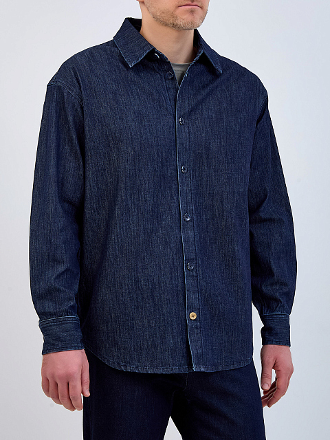 Джинсовая рубашка Regular Fit из смесового хлопкового денима