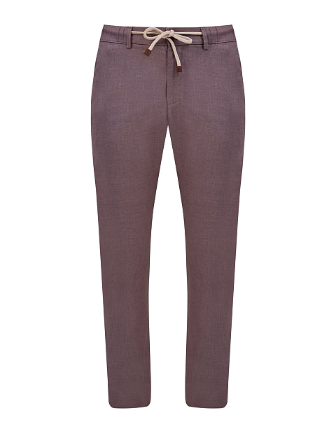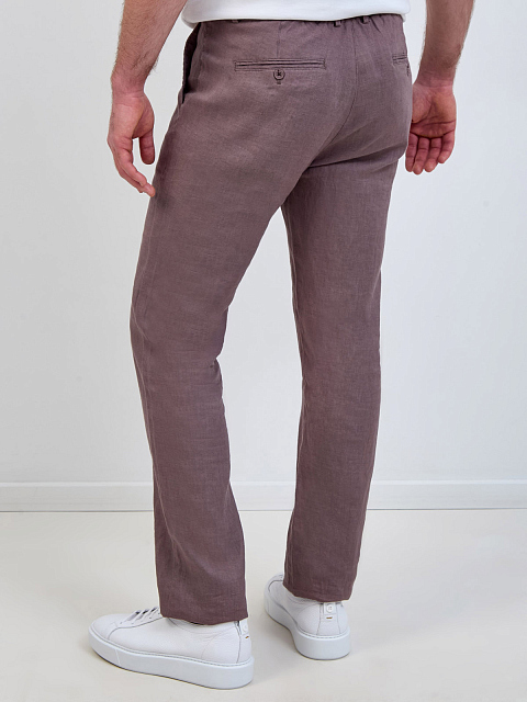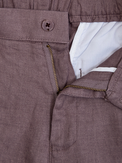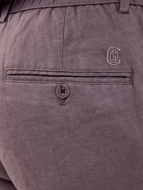 Льняные брюки зауженного кроя с вышитым логотипом в тон