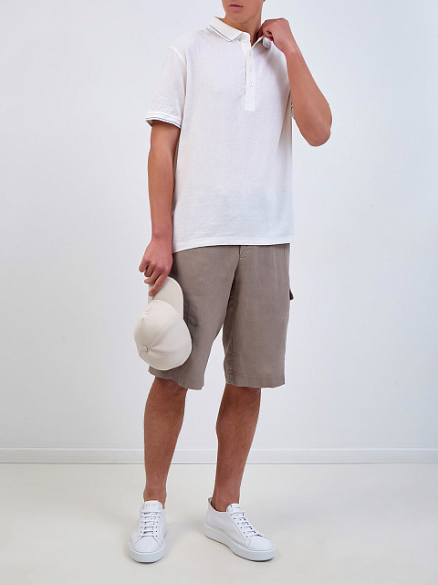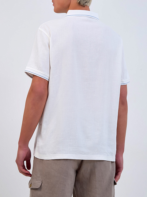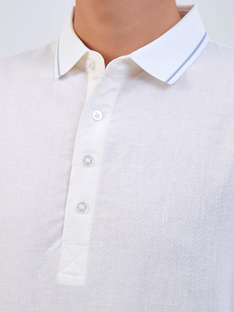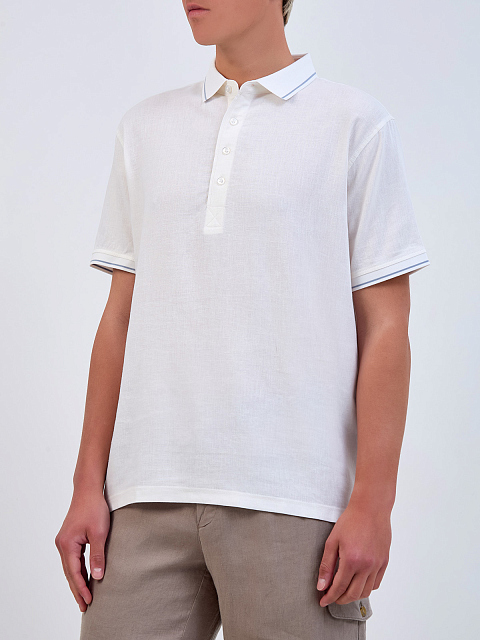Поло из льняной ткани с контрастной окантовкой кромок