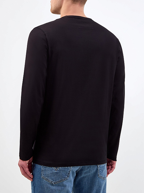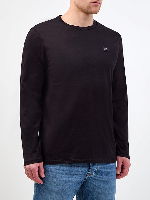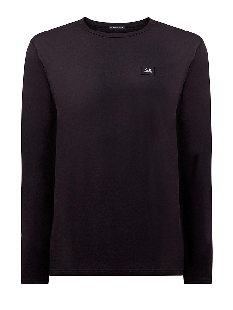 Базовый мужской лонгслив в универсальном черном цвете от C.P. Company. Минималистичная модель создана из натурального хлопкового джерси — дышащая и гигроскопичная ткань обеспечивает максимальный комфорт в движении. Детали: нашивка с логотипом, круглый вырез горловины, простроченные швы, длинные рукава.