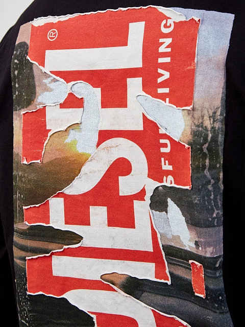 Хлопковый лонгслив T-Crane с двухслойным принтом sunset