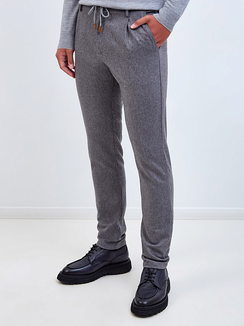 Однотонные брюки из меланжевой шерсти и кашемира на кулиске