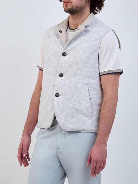 Двусторонний жилет из льняного джерси и хлопка с утеплителем