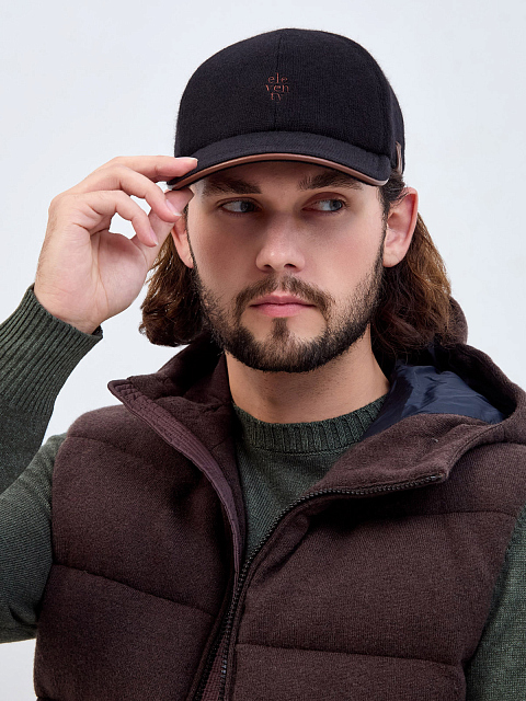 Кашемировая бейсболка с деталями из кожи и логотипом