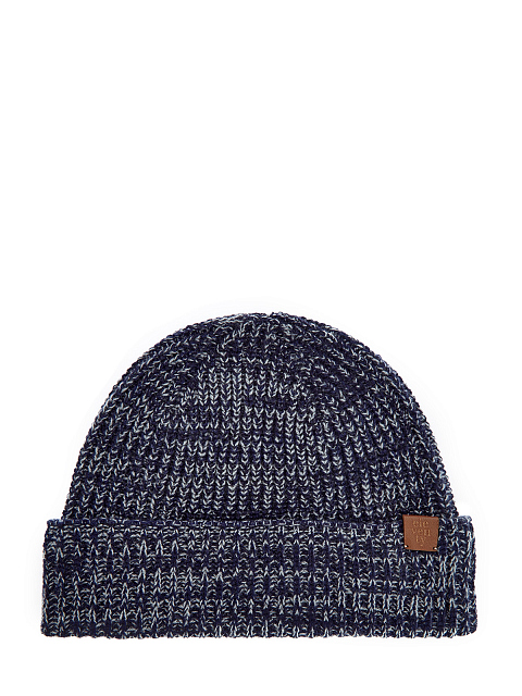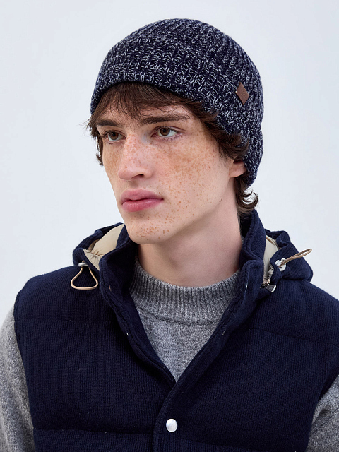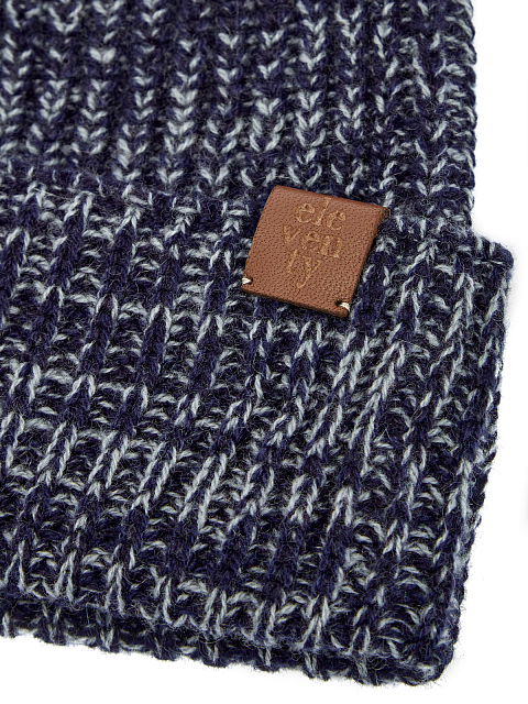 Шапка из двухцветной кашемировой пряжи с кожаной деталью