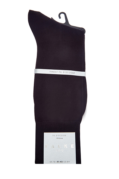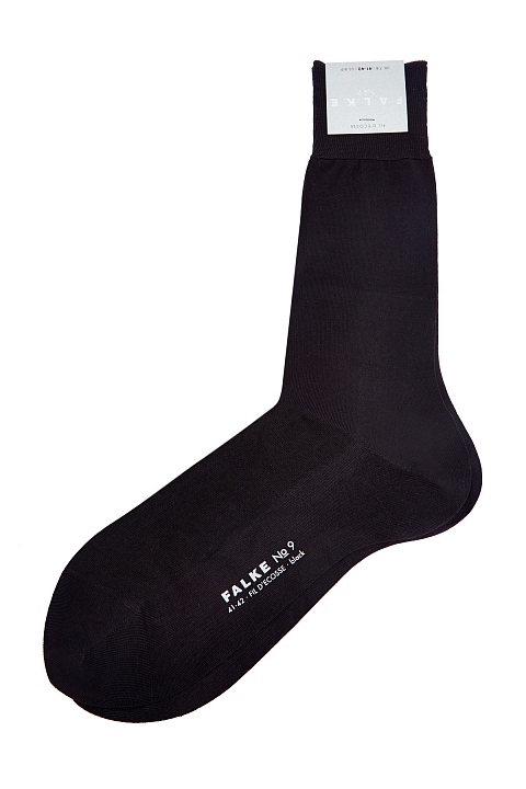 Мужские носки из коллекции Falke № 9 с завышенным голенищем выполнены мастерами бренда вручную. Модель изготовлена из дышащей и гигроскопичной египетской хлопковой пряжи Karnak в базовом черном цвете с деликатным сатиновым блеском по поверхности. Уплотненная нижняя часть дополнена вышитой контрастной нитью монограммой бренда. Широкая резинка в рубчик обеспечивает комфортную фиксацию. Сделано в Германии.