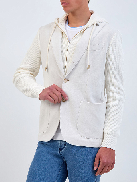 Комбинированная куртка-пиджак со съемной вставкой и капюшоном