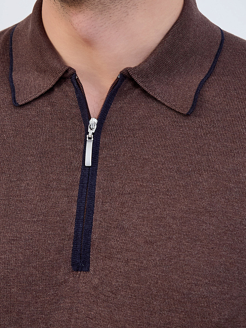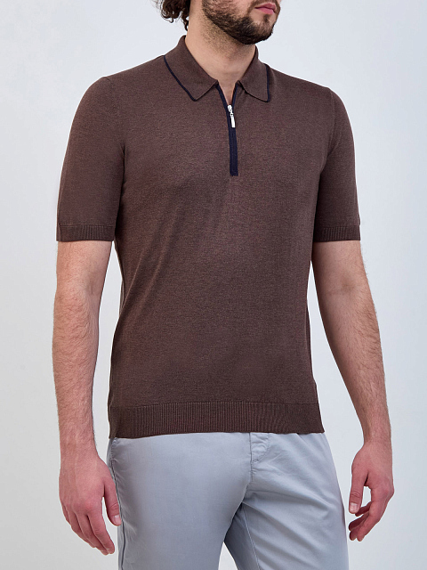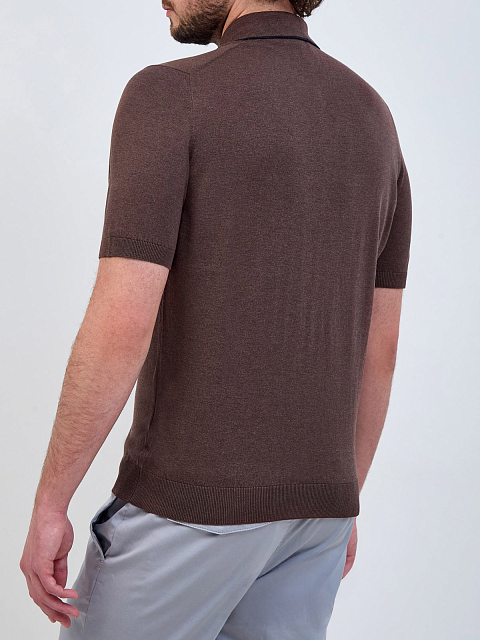 Джемпер-поло из шелка с контрастной окантовкой ворота