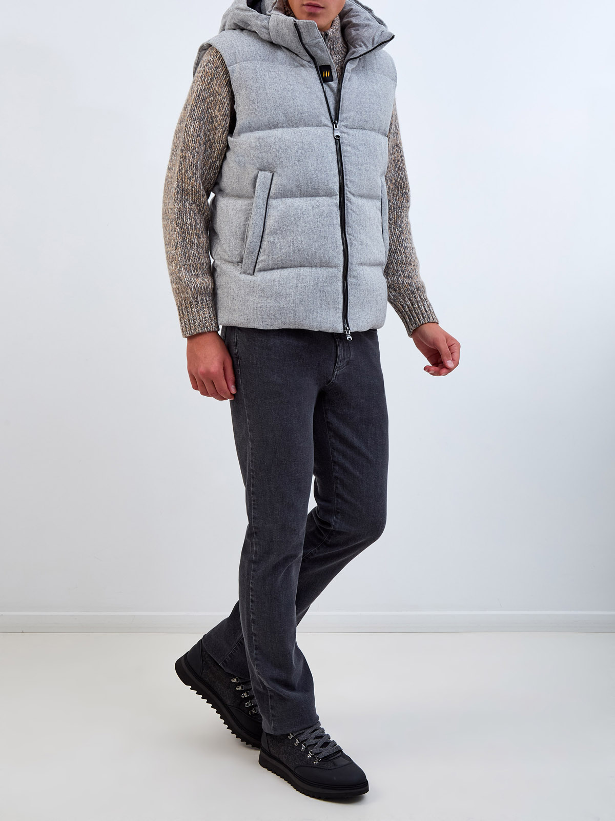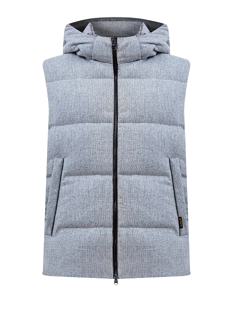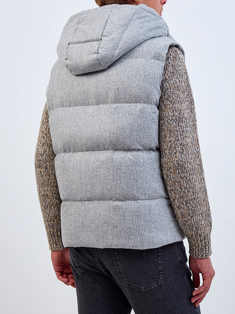 Пуховый жилет из стеганой шерстяной фланели с капюшоном