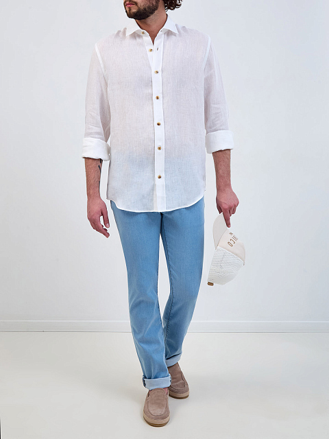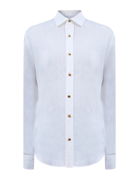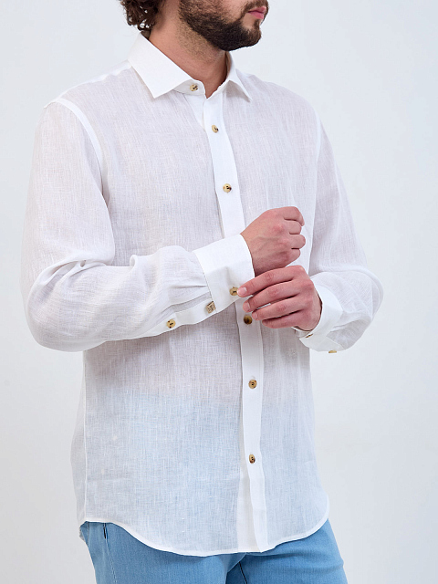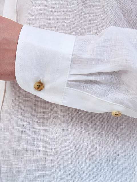 Рубашка из тонкого льна с вышитым микро-логотипом в тон