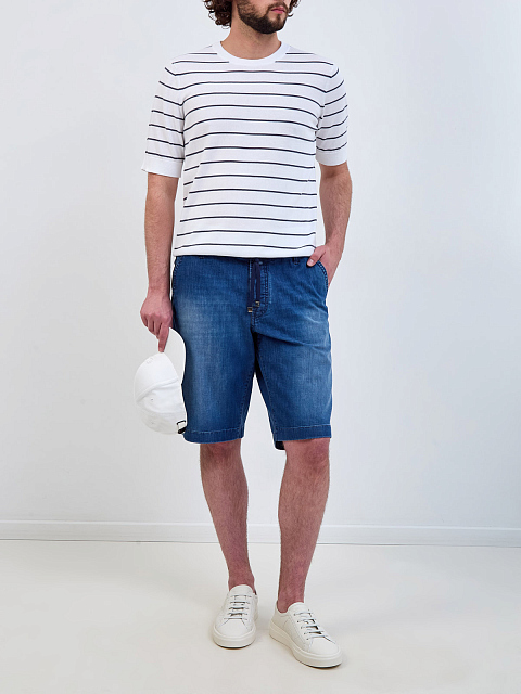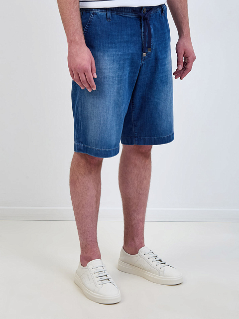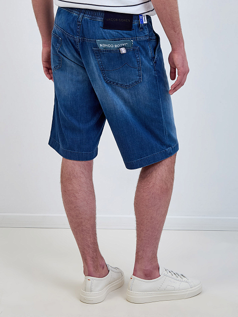 Мужские шорты в расслабленном стиле от Jacob Cohen созданы из окрашенного вручную японского денима. Выверенный состав обеспечивает свободу движений и сохраняет плотную текстуру натурального материала. Культовый стиль Модного дома подчеркивает ароматическая пропитка, нашивка из меха пони на поясе и платок-паше для ухода за фурнитурой в комплекте. Окрашивание в готовом виде создает легкий выбеленный эффект, делая каждую модель уникальной. Детали: эластичный пояс на регулируемой кулиске. Сделано в Италии.