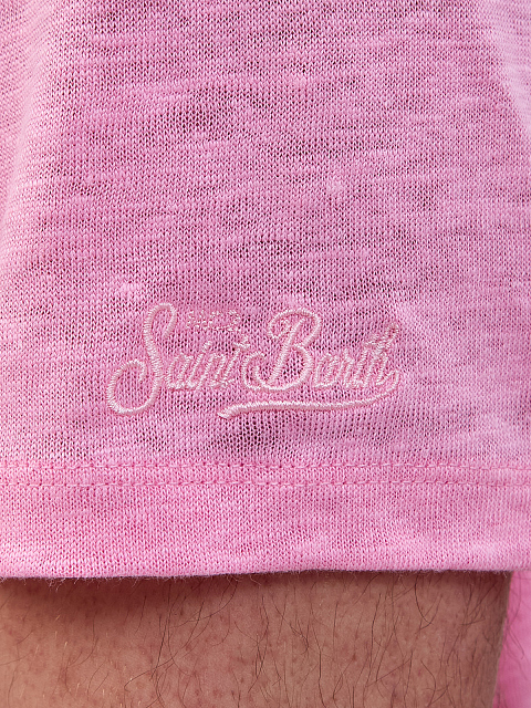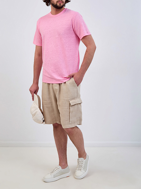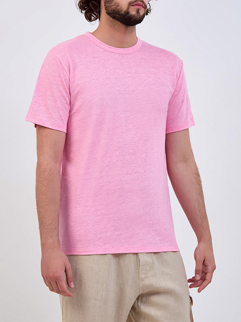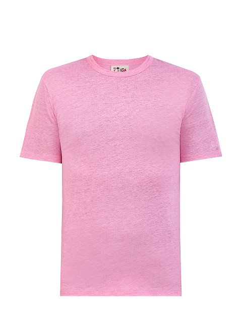 Футболка из премиального льна с вышивкой на рукаве в тон