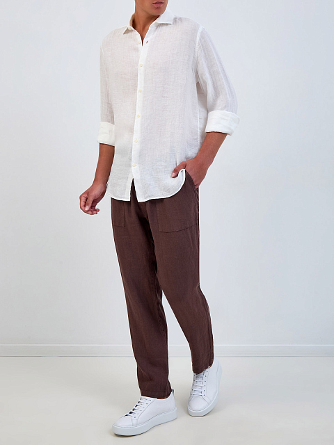 Свободная рубашка из тонкой льняной ткани с вышивкой в тон