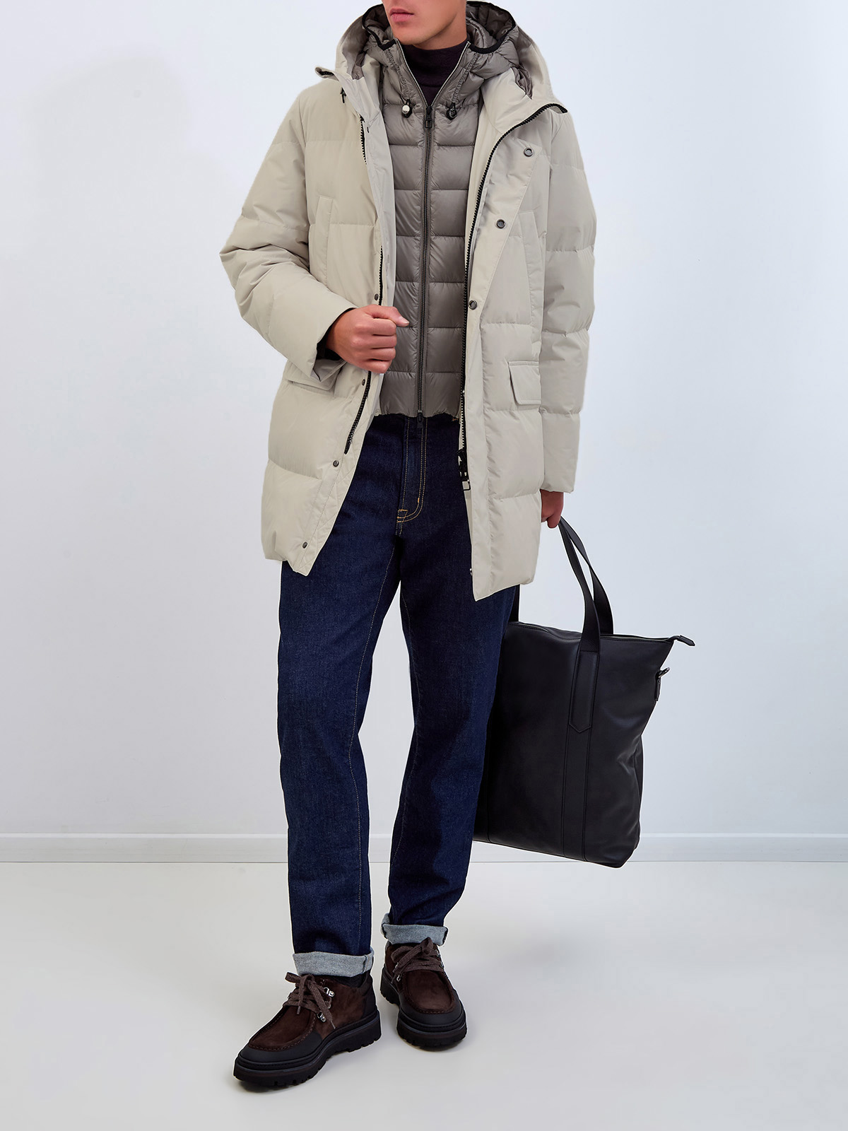 Стеганый пуховик из шерсти со съемным внутренним жилетом