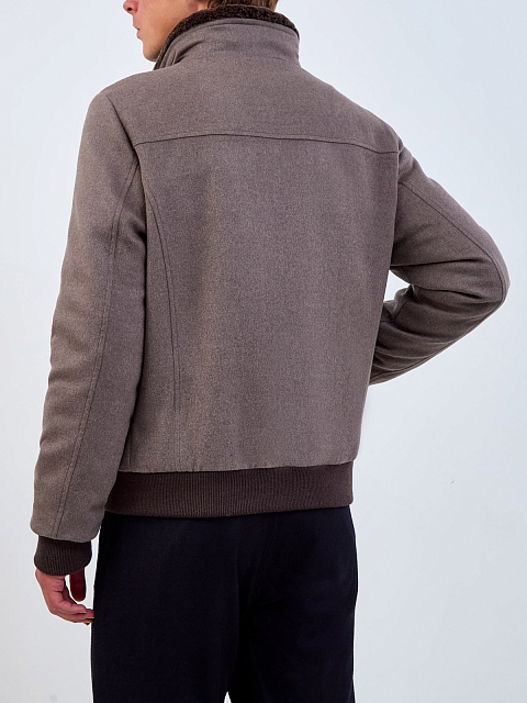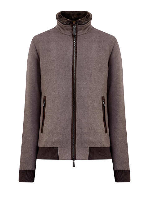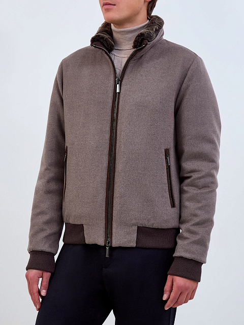 Пуховый бомбер из шерсти и кашемира с меховой отделкой