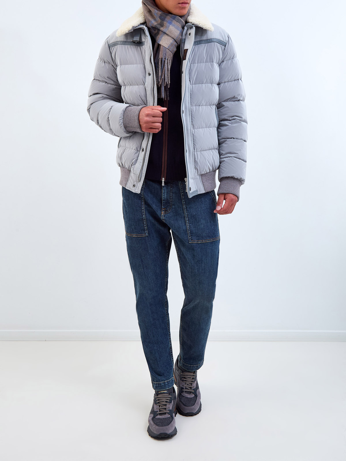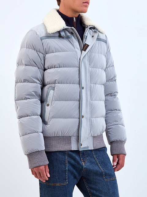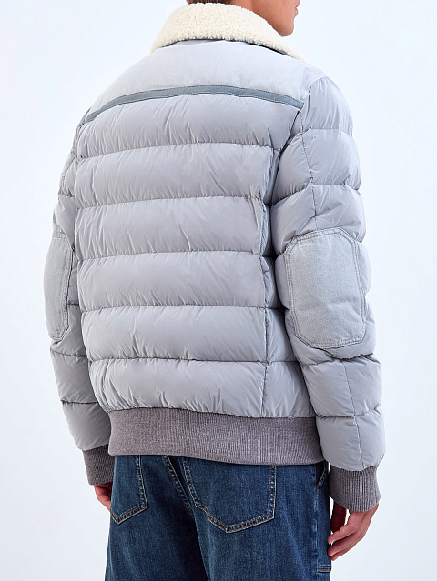 Стеганый бомбер с подкладкой из гусиного пуха и съемным воротом