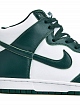 Кроссовки Nike Dunk High Spartan Green вдохновлены официальными цветами Университета штата Мичиган, который известен своей баскетбольной командой Spartans. Кроссовки изготовлены из мягкой текстурированной кожи и имеют белую основу, которая обита зелеными накладками. Брендинг Nike представлен кожаным логотипом Swoosh по бокам и патчем на нейлоновом язычке. Конструкция закреплена на плотной резиновой подошве белого цвета с зеленой подметкой. В комплекте: белые шнурки.