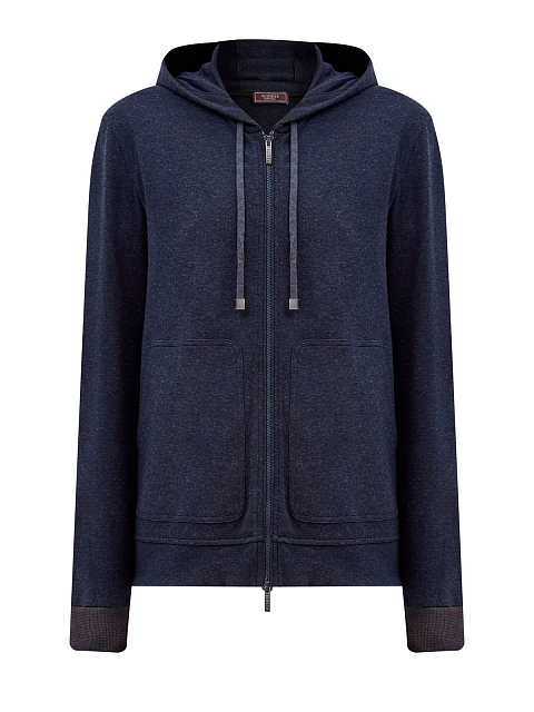 Толстовка из меланжевого хлопка с капюшоном и контрастными манжетами
