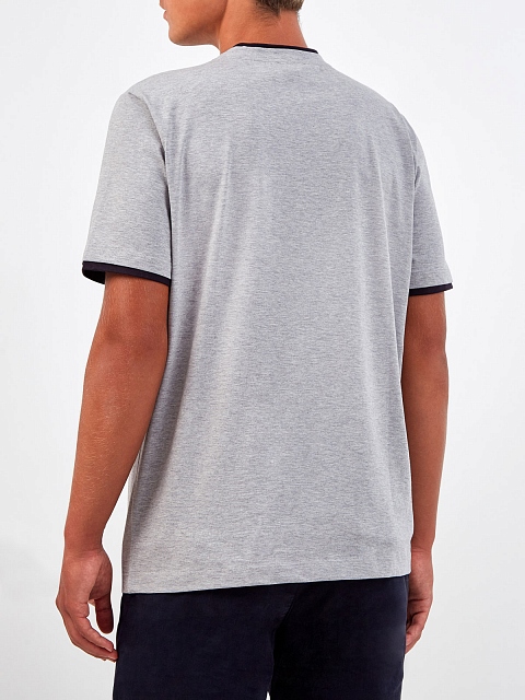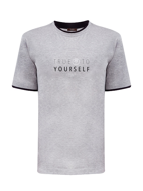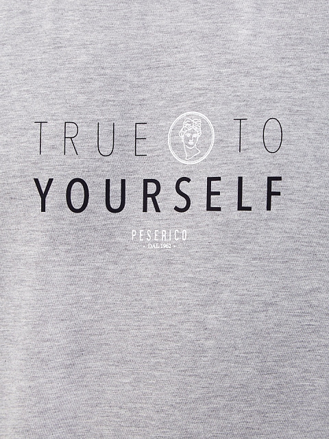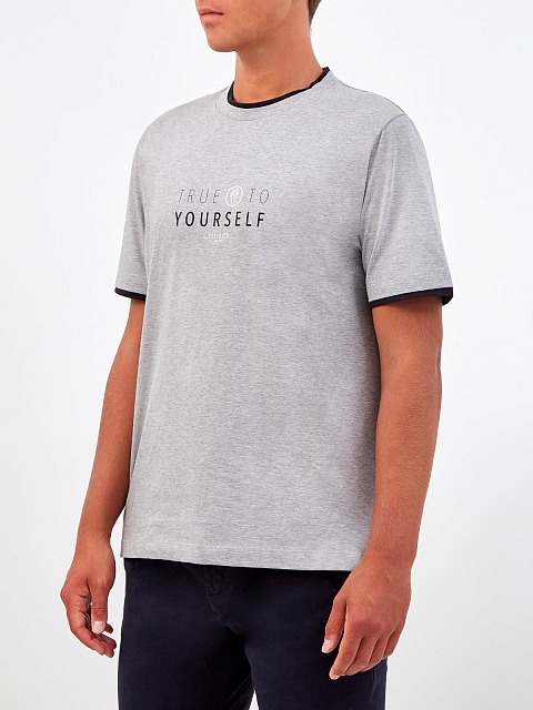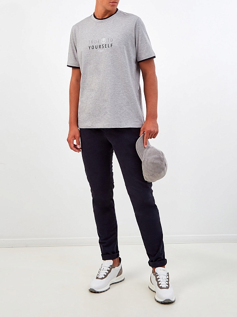 Мужская футболка от Peserico выполнена из египетского хлопка мако — легкой, гладкой и эластичной ткани с текстурой джерси и полностью натуральным составом. Изделие в меланжево-сером оттенке дополнено принтом в стиле леттеринг и контрастной окантовкой. Детали: прямой крой, короткие рукава, круглый вырез. Сделано в Италии.