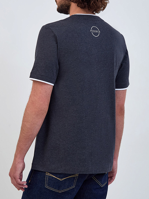 Мужская футболка в меланжево-сером оттенке от Peserico. Лаконичная модель выполнена из мягкого хлопка джерси — дышащая и гигроскопичная ткань обеспечивает полную свободу движений, делая повседневный аутфит максимально комфортным. Расслабленный акцент в образ вносит двойная контрастная окантовка ворота и манжет, а также логотип на спинке. Сделано в Италии.