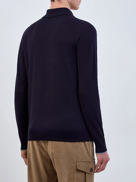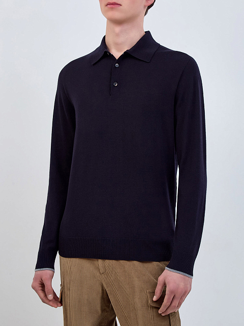 Джемпер-поло из тонкой шерсти с контрастным кантом