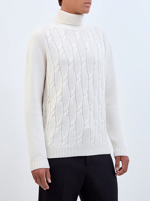 Свитер из мягкой шерсти мериноса с вязаным узором «косы»