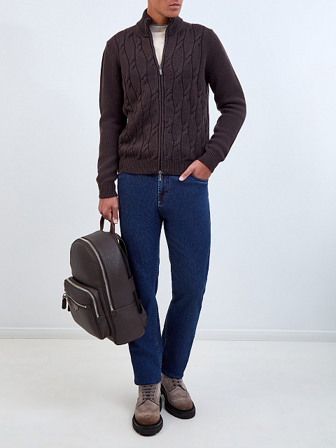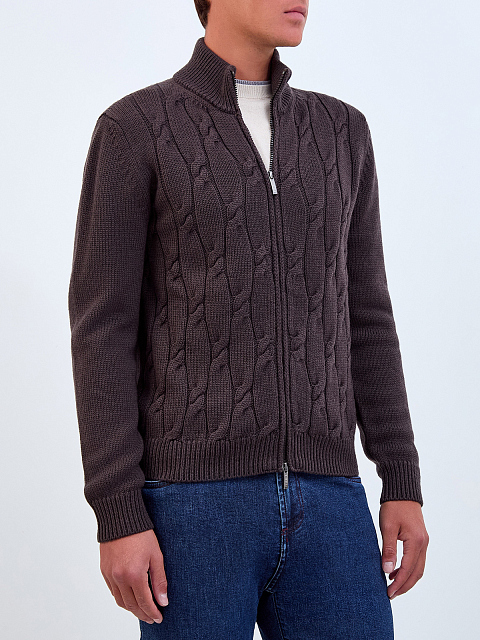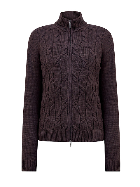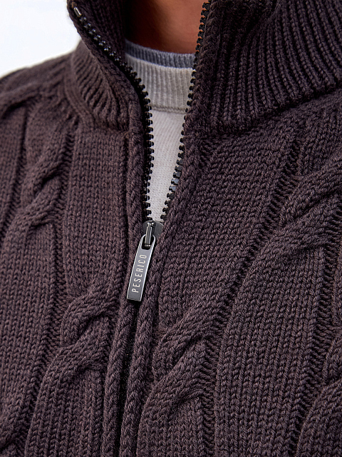 Кардиган из шерсти мериноса с вязаным узором и застежкой-молнией