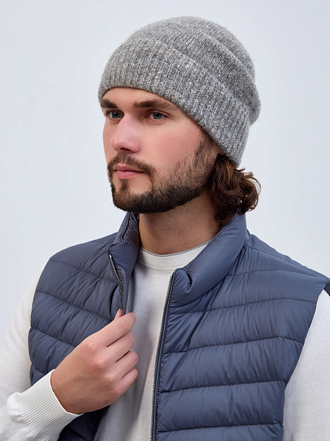 Шапка из альпаки и шерсти с отворотом английской вязки