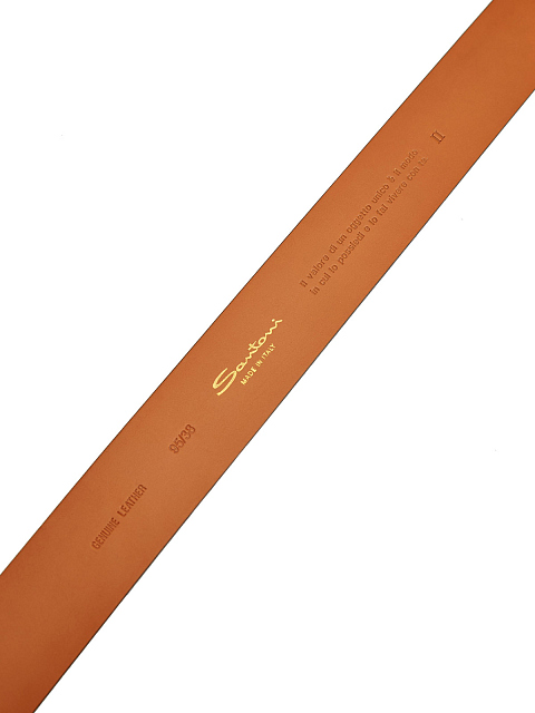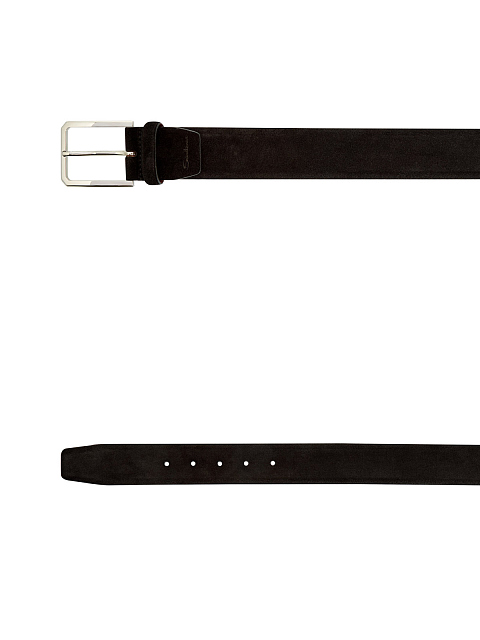 Элегантный мужской ремень от Santoni выполнен из бархатистой замши. Традиционная прямоугольная пряжка дополнена литой отделкой, гладкая внутренняя поверхность создана в фирменном оранжевом цвете. Логотип бренда в технике тиснения завершает минималистичный дизайн. Детали: фурнитура с серебристым напылением, прострочка кромок в тон. Сделано в Италии.