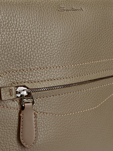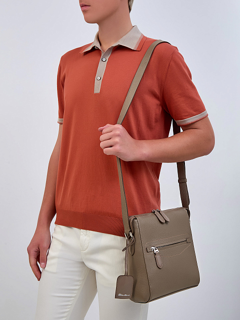 Лаконичная сумка-мессенджер от Santoni создана мастерами бренда вручную из крупнозернистой кожи. Аксессуар с регулируемым с плечевым ремнем дополнен внутренним и наружным карманами на молниях. Минималистичный фирменный штрих — тисненый логотип на передней планке. Детали: застежка на двойную молнию с брендированными пуллерами из гладкой кожи, одно отделение с текстильной подкладкой. Сделано в Италии.