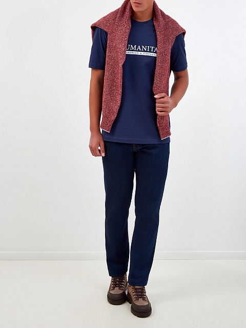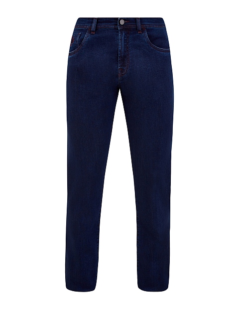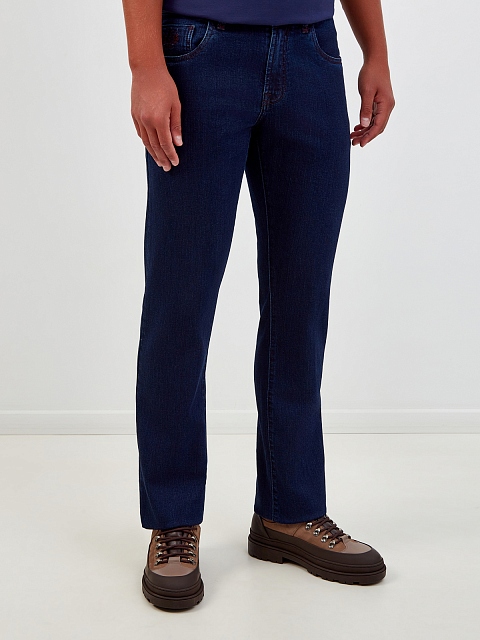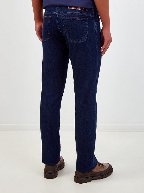 Джинсы из хлопка и кашемира с клетчатой нашивкой на поясе
