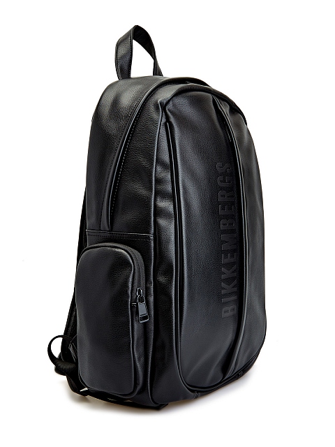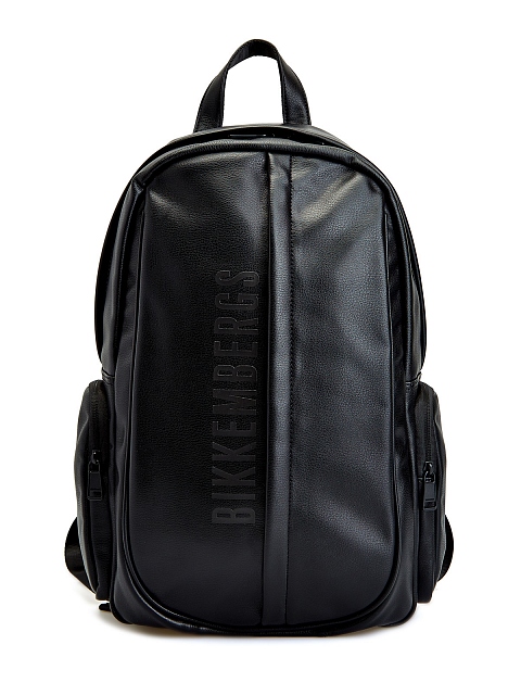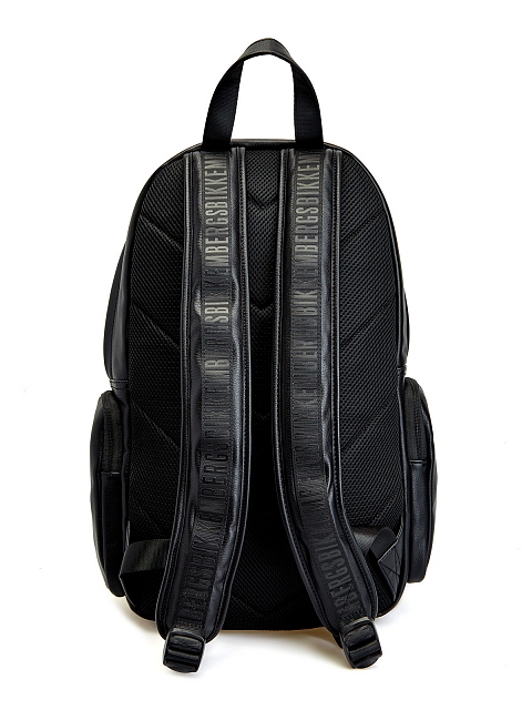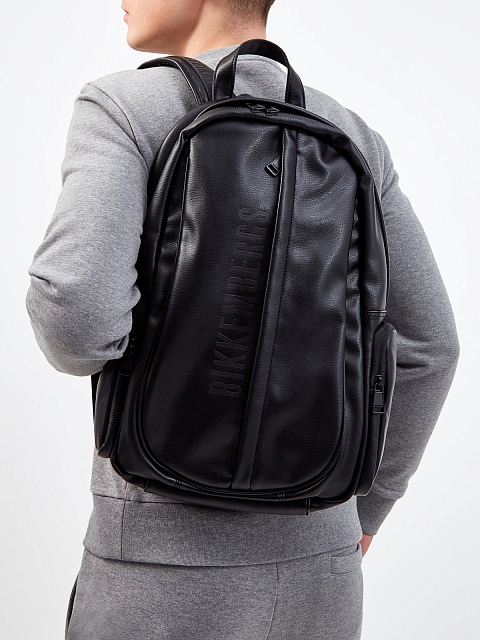 Универсальный рюкзак в черном цвете от Bikkembergs выполнен из эко-кожи с легким матовым блеском. Основное отделение на подкладке оснащено накладными и прорезными карманами на застежках. Фирменный штрих — макро-логотип на передней планке. Детали: комфортные бретели с возможностью регулировки, спинка с дышащей мембранной тканью.