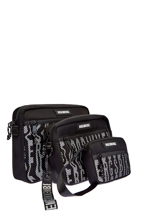 Дорожный комплект сумок от Bikkembergs выполнен из прочного нейлона в базовом черном цвете. Универсальные аксессуары станут незаменимым дополнением в путешествии. Комплект выдержан в едином дизайне. Каждая модель дополнена контрастной монограммой BIKKEMBERGS и вставкой из эко-кожи с логотипом бренда. Размеры изделий: 21×30×8 см, 18×25×8 см, 13×18×4 см. Детали: внутренние и внешние карманы на молниях, текстурированные ручки, фирменная фурнитура.