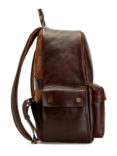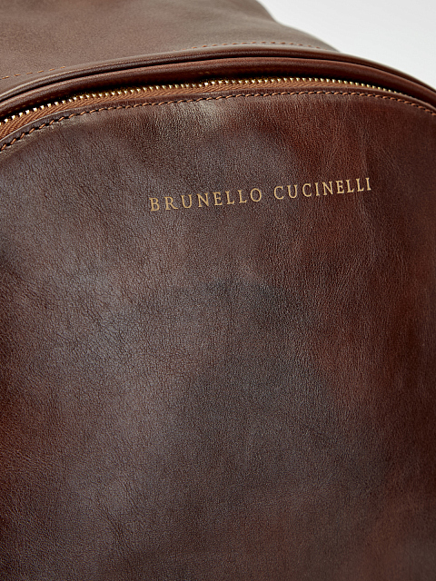 Вместительный мужской рюкзак от Brunello Cucinelli — универсальное решение как для города, так и для путешествий. Телячья кожа дополняет аксессуар гладкой, немного размытой текстурой, особая отделка и окрашивание придают коже легкий эффект чередования светлых и темных участков в винтажном стиле, что выражается в уникальных оттенках и деталях каждой модели. С наружной стороны присутствуют два боковых кармана на магнитной застежке и передний карман на молнии: все необходимые вещи всегда будут под рукой. Ремешок сзади позволяет крепить рюкзак к чемодану для удобной перевозки. Сделано в Италии.