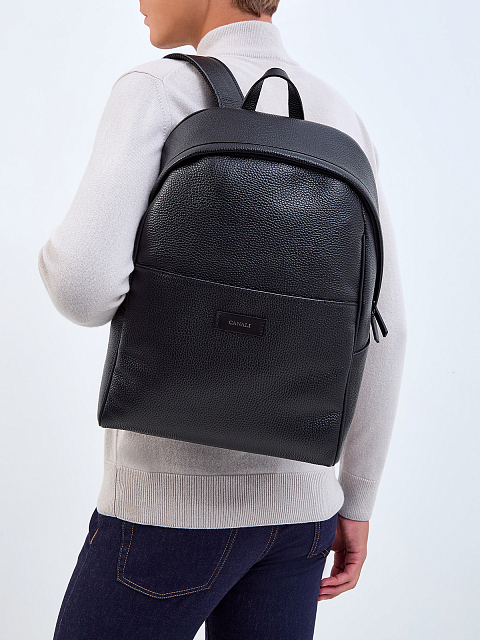 Минималистичный мужской рюкзак от Canali выполнен из матовой телячьей кожи крупнозернистой выделки. Аксессуар в универсальном черном цвете дополнен мембранной спинкой, широкими регулируемыми бретелями и ручкой для дополнительного комфорта. Вместительное внутреннее отделение полностью на подкладке. Детали: застежка на молнию с двойным пуллером, внешний прорезной карман, патч с логотипом бренда. Сделано в Италии.