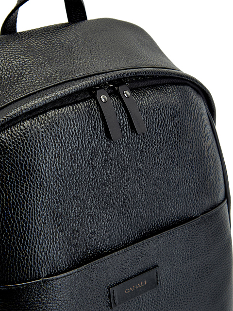 Минималистичный мужской рюкзак от Canali выполнен из матовой телячьей кожи крупнозернистой выделки. Аксессуар в универсальном черном цвете дополнен мембранной спинкой, широкими регулируемыми бретелями и ручкой для дополнительного комфорта. Вместительное внутреннее отделение полностью на подкладке. Детали: застежка на молнию с двойным пуллером, внешний прорезной карман, патч с логотипом бренда. Сделано в Италии.