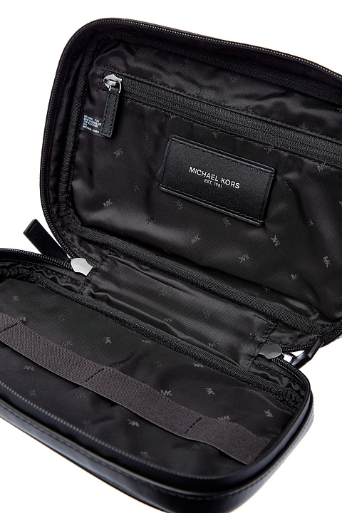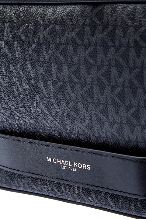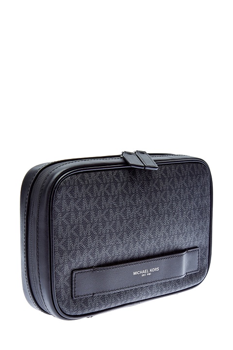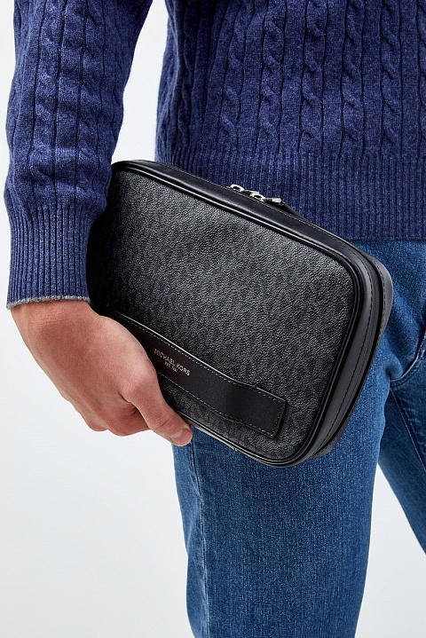 Компактная мужская сумка от Michael Kors выполнена из экологически чистой кожи — специальная формула делает материал устойчивой к царапинам, благодаря чему аксессуар прослужит действительно долго. Ручка-лента выполнена из натуральной кожи и предполагает носку изделия в ладони. Детали: all-over принт, водонепроницаемая молния с двумя пуллерами, внутреннее отделение на подкладке с органайзером и карманом. Параметры: 25×16×5.5 см.